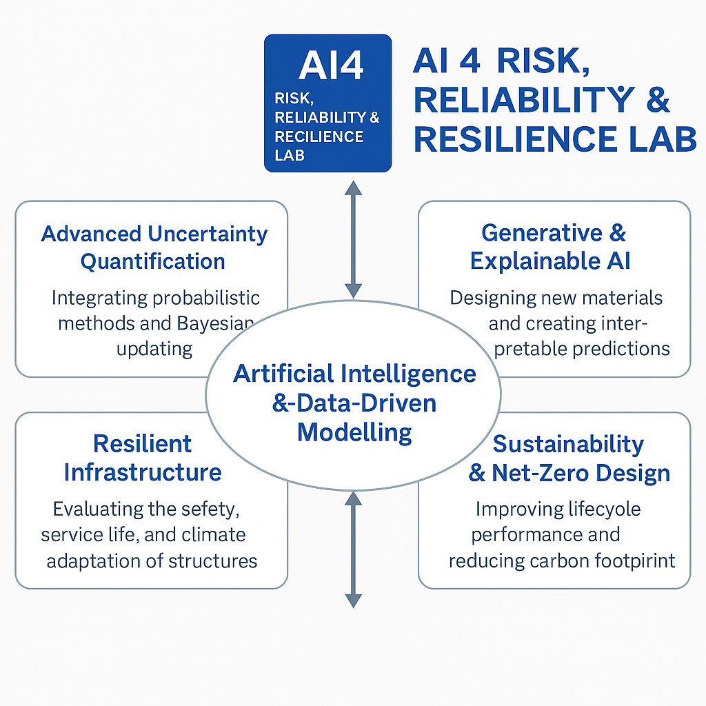 We advance the safety, sustainability, and resilience of civil and structural infrastructure by integrating artificial intelligence (AI), probabilistic modelling, and data-driven design. Our work bridges cutting-edge computational methods with practical engineering to enable smarter decision-making under uncertainty.